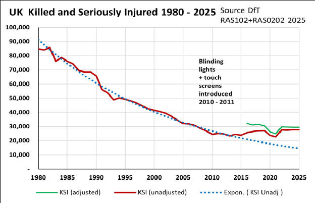 It is a tragedy, that the exponentially declining rate of fatalities in the UK and EU has been broken since blinding lights were mandated in 2011.